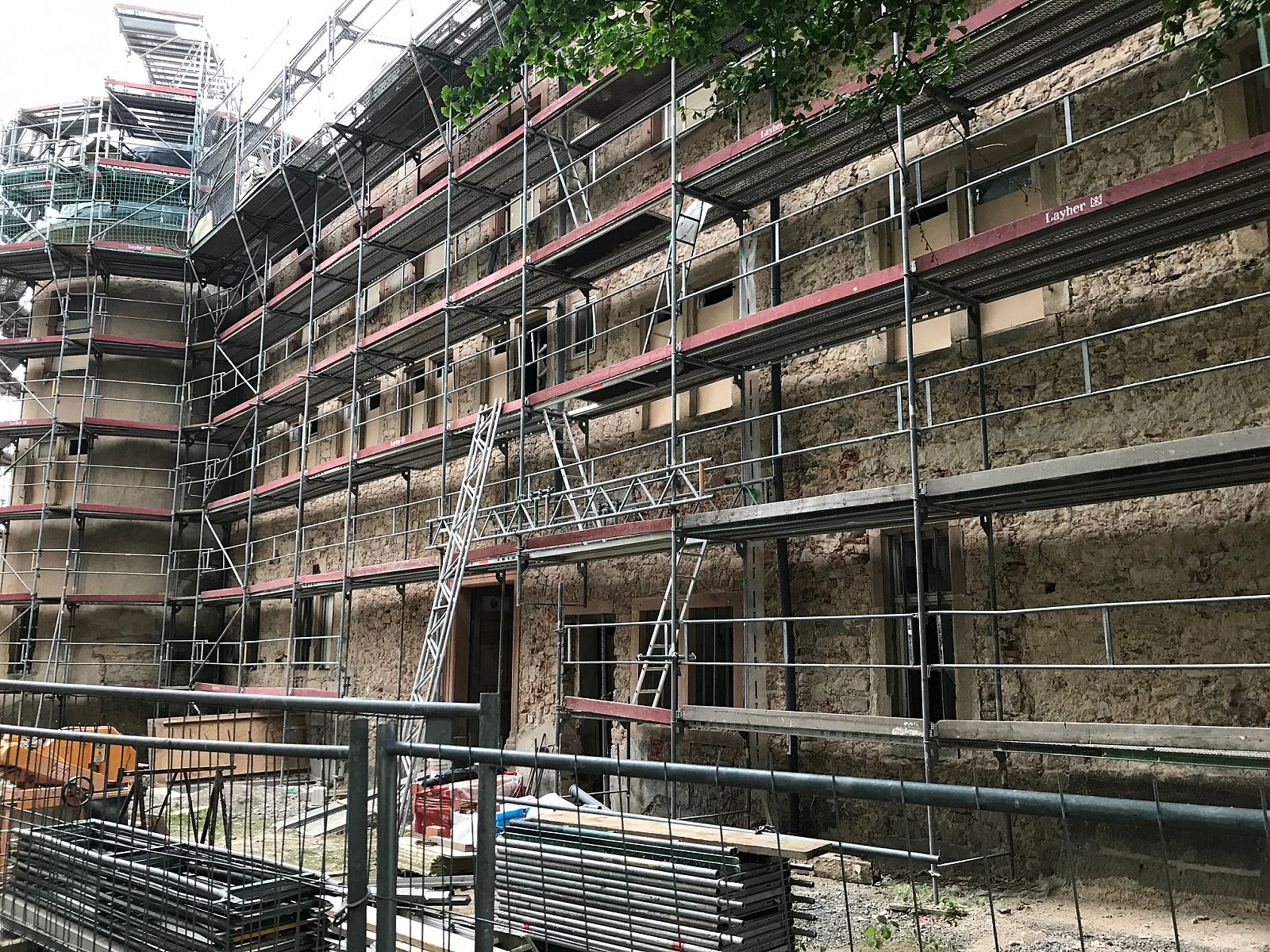Schloss-Update: die Treppe wird derzeit restauriert. Neue Decke 1. OG eingebaut. Maurerarbeiten neigen sich dem Ende zu. Der Aussenputz ist abgeklopft. Vielen lieben Dank an die Nachbarn, die so viel Verständnis haben und die unvermeidbaren Belästigungen so tapfer ertragen.